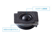 ウーファーとトゥイーターは今回本機のために特性が優れたものを新たに開発し、採用した。日本オーディオ協会が決めたハイレゾオーディオを名乗る条件には、再生周波数の上限が40kHzまで対応することが義務づけられている。余裕を持ってクリアするため、2倍の100kHzまで再生可能なトゥイーターを搭載した(口径は19mmで素材はシルクドーム)。