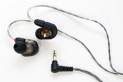 さらにシリーズのミドルクラス帯に位置する「ATH-E50」は、素直なサウンドがポイントとなるシングル・バランスドアーマチュア型(以下、BA型)ドライバーを積んでおり、よりコンパクトな筺体を用いて装着性を向上させ、DTM制作でのモニターだけでなく、ステージモニターとしてよりアクティブなシーンでの使用も想定したつくりとなっている。