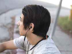 最初に紹介するのが人気モデルをベースにしたイヤホン「Smokin' Buds2 Wireless」だ。イヤホンを耳に装着して、さらに“フレックスカラー”と呼ばれる着脱式のサポーターを使うと、ケーブルを肩に乗せるスタイルで安定した装着感が得られる。