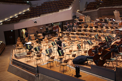 DCHの取材に出かけた日はちょうど同音楽祭の開幕日に当たり、フィルハーモニーではハーディング指揮バイエルン放送響によるウォルフガング・リーム《トゥトゥグリ》のリハーサルが行われていた。ステージ上に並ぶ楽器の数は半端ではなく、特に主役を担う打楽器の数の多さに目を奪われる。