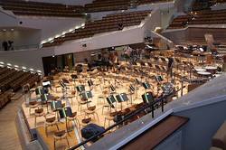ホールの音響の良さに感心していたら、クリエイティブ・プロデューサーのクリストフ・フランケ氏がステージ近くの客席で手を叩き、開放的でクリアな残響に特徴があることを説明してくれた。また、空席時と満席時の残響時間の差が少なくなるように当初から工夫されていることにも、フィルハーモニーの設計の巧みさが感じられるという。それは筆者が同ホールでこれまで体験した響きの印象ともピタリと一致している。録音と実演の両方で優れた音響が得られるのはそこにも理由がありそうだ。