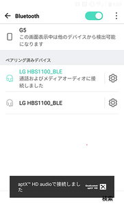 ハイレゾ音源を再生したときの第一印象は、高域成分がだいぶ控え目になるということ。ダウンサンプリングを伴うためやむを得ない部分だが、CD音源では味わえない広い音場感と高域の豊かさは減ってしまう。LG G5に付属のミュージックプレイヤーは、FLACのほかDSDの再生にも対応しているが、HBS-1100との組み合わせをハイレゾ再生環境とカテゴライズするのはさすがに無理がある。