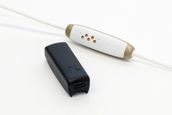 リモコンユニットに内蔵するバッテリーで約4時間の連続再生に対応する。ジムやアウトドアでのトレーニング、1日外出して音楽を聴くのには十分な容量だと思うが、本体のバッテリーが切れてしまった場合についても、本機のユニークな機能でバッテリーを“追加”できる。