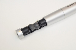 イヤホン本体は3.5gと、今回取り上げる3製品の中では一番軽い。円筒形のボディも非常に小さく作られているので、極端に言えばまるでイヤーチップだけを身に着けているような装着感だ。本体にL/Rがプリントされている。