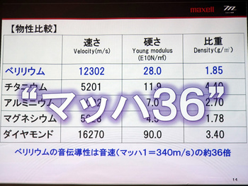 マクセルさんで言うと、自分はその前の「マッハ36」にもしびれました。ハイエンドヘッドホン「MXH-MD5000」のベリリウムコート振動板をアピールする際のワードですが。