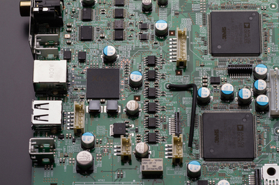 MMMは、「MMM-Stream」と「MMM-Conversion」に別れているが、前者が、このデジタル基板上にある。その役割は、L/R独立の2基のDSPと、1基のCPLD(FPGAよりも規模が小さく、アルゴリズムで独自の半導体のように動作する)が連携し、全てのPCMを11.2MHzまたは12.3MHzでオーバーサンプリングし、ΔΣ変調によって「1」「0」の1bit信号化を行いDSDに変換して、PCMをパルス波化(疎密波化)する。