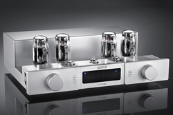 機能はシンプルそのもので、トーン/バランスコントロールはない。ライン入力はRCA×4、XLR(2番HOT)×1。XLRにはOPアンプが介在する。付属リモコンは音量調整専用。仕上げはシルバー/ブラックが用意されている。MCカートリッジ専用フォノEQ機能を内蔵する“フォノモデル”もラインアップされ、価格は1,170,000円(税抜き)だ。MMカートリッジ専用は特注。もちろん、いずれの仕様にも着脱自在な真空管保護カバーと出力管KT120(1球)が付属する。