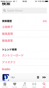 iPhoneにiTunesからチェックアウトした楽曲と、Apple Musicから「追加」をチェックしたりダウンロードした楽曲がまとまって「ライブラリ」に放り込まれてしまうのも、最初はどうも馴染みづらい。反面、iOS版の新UIでは「検索」メニューが独立して、Apple Musicとライブラリのどちらを検索するか、ハッキリとして使いやすくなっている。