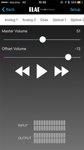 「EA101EQ-G App」そのものは、付属リモコンでも操作できる入力切り替えや音量調整の他、BASS/TREBLE、入力系統のリネーム、ディスプレイの照度調整といった項目にも対応する。