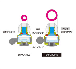 その「要点の向上」で特に大きいのは、まず「前置マグネットの大型化」だ。振動板の表裏にマグネットを配置して磁力のロスを減らし、ユニットの動きをよりスピーディにする「前置きマグネット方式」は、現在のエレコムのお家芸だ。