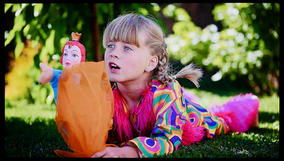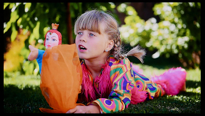 スキントーンに少し赤みが乗っているものの、写真中、木々の葉や芝の緑、服装に含まれるピンクや赤も誇張が見られない。測定用パターン(全画面に単色のカラーパッチ)を用いて測定した結果と乖離があり、図柄を認識して色合いが不自然に誇張されないようにコントロールしているのかもしれない。
