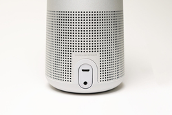 SoundLink Revolveの最も大きな特徴は、360度の無指向性スピーカーなのに本体サイズがコンパクトで、なおかつパワフルな音を出せるところにある。一般的に360度へ均等なバランスで音場を広げることのできる無指向性スピーカーは、本体に複数のユニットを搭載しているためにボディのサイズが大きくなりがちだ。あるいは本体がコンパクトにできたとしても、肝心の音が痩せていて迫力がないということもある。