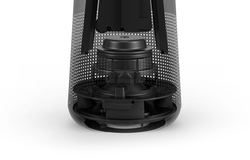 本機の方式は、フルレンジスピーカー1基で下に向けて音を鳴らし、その音を独自設計の音響デフレクターで反射して360度に拡散、パンチグリルから音が広がる形となる。なお、低音は音の指向性が弱いこともあり本体上部側にパッシブラジエーターを2基搭載し、重低音の再生能力を兼ね備える設計となっている。