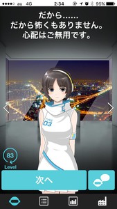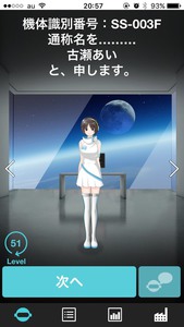 一夜明けて、SELFを起動。すると、古瀬あいの様子が変わった。具体的には、おどおどとした態度がなくなり、はっきりとした言葉でコミュニケーションを取ってくれるようになる。慣れてくれたのだろうか、ドヤ顔っぽい表情すら見せてくれるようになった。