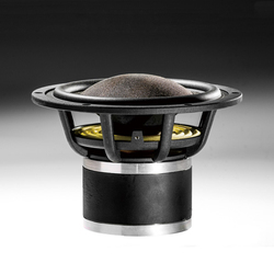 まずその概要を押えておこう。トゥイーターは従来のアルミ振動板の8Ωタイプから、「TRIO XD」と同じものにアップグレードされた。マイラーフィルムの振動板で磁気回路の磁石は3kgの重量級、インピーダンスは17Ωでミッドとのクロスは1kHzだ。ミッド用のドライバーはアルニコマグネットの磁気回路を持っているが、ドライバーの振動板がソフトメッシュのファイバーグリッド(格子)ドームになった。繊維を編んだ上に、特殊樹脂素材でコーティングしてあるものだ。
