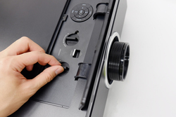 4種類の別売コンバーションレンズは、本体のレンズユニットを丸ごと取り外して交換する機構となっている。これはユーザーの手で交換するというよりホームシアターインストーラーによる設置が一般的な米国流の設置を配慮したものだろうが、特別な工具を使わずに素手ですぐに手回しで行えるため難しさはない。