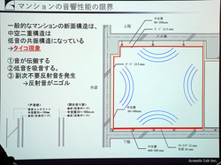 現代の住宅は一般的に、外壁と内壁の二重構造になっており、その壁の間に電気の配線や配管、断熱材を入れている。簡単に施工でき高気密高断熱で快適にはなっているのだが、オーディオ的な観点から考えると音質に悪影響を与える一因になっているのだという。