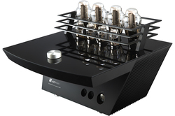 さて、今回の主役、SHANGRI-LAに話を移そう。本機で一際目を引くのは、パワーアンプ並みのビッグサイズの専用アンプだ。真空管マニア垂涎の3極管300Bが4本、天面からニョキッと突き出ている。