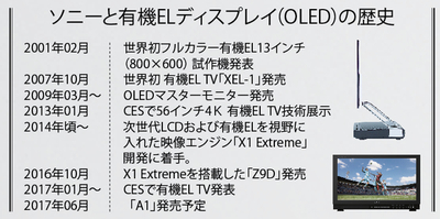 ブラビアで有機ELテレビの製品化がついに実現したのは画期的なことだが、製品化が予期し得なかったわけではない。10年前すでに卓上型の有機ELテレビ「XEL-1」を発売して高コントラストの鮮やかな映像を印象づけたり、プロフェッショナル分野では同社のOLEDマスターモニターが映像製作のレファレンスとして活躍中だ。有機EL製品へのソニーの取り組みは15年以上に及び、もちろんパネルの特性も熟知している。その知識とノウハウを投入した家庭用大型テレビの発売は当然予測できたことであった。