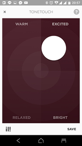 プリセットされた4つのサウンドプロフィールを利用してもいいし、画面を見ながらまるでゲームのように音色や音調を可変できる。再生・停止はグリルをダブルタップすれば良いし、本体をシェイクすると曲送りもできる。楽しく音調を変えられるアプリと今までにない直感的な動作で使っていて楽しい。