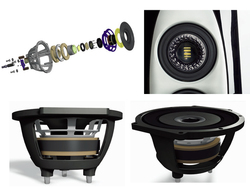写真からはサイズが分かりにくいかもしれないが、高さ約170pの大柄な筐体である。フロントに同軸型のVX‐JETとミッドウーファー、左右に25p口径のウーファー2個を背中合わせに2組搭載。いずれも本機のために新たに開発されたドライバーユニットである。
