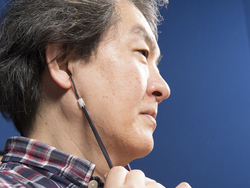次のステップではいよいよ耳の音響特性を測定する。先端に小型のマイクユニットを組み込んだ器具を装着し、インパルスで構成されたテスト信号を再生。マイクを装着したまま次にヘッドホンをかけて同じ信号を再生すれば測定は完了だ。耳の穴のなかでマイクの位置を追い込む作業にじっくり時間をかけるのは、その精度によって音像定位や距離感が左右されるからだという。