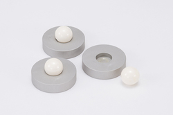 3点支持の大型脚部もアルミ製で、底にはセラミックボールが埋め込まれ、この脚部をセラミックボールで受けることで点接触としている。