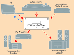 最後にフォノアンプとしての機能性を確認すべく、レコードプレーヤーを接続(ラックスマンPD-171A、カートリッジ/フェーズメーションPP-2000)。締まり良く爽やかで、個々の音の粒立ちが明瞭に感じられる。伸び良くストレートなサウンドだ。384kHzでアナログリッピングも行ってみたが、再生用PCに録音用ソフトウェアを用意すれば良いので、再生環境と同一の接続で簡単にハイレゾ再生とレコード録音を両立できる点が好ましい。システムもEVO PhonoDAC Twoという非常にコンパクトなハードウェアがひとつだけであり、仰々しいシステムを必要としないシンプルさもまた美点だ。