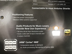 マイク入力に対応することもポイント。デジタルマイクは最大8チャンネル、アナログマイクは最大4チャンネルの入力をサポートする。「マルチトラック録音や音響ビームフォーミングのほか、ノイズキャンセリングに活用できる」(小泉氏)とのことで、S-Master HX相当の出力段とあわせれば、ユニークな小型オーディオ機器も開発できそうだ。IOボードを用意すれば、Arduino用エクステンションボード(Shield)も搭載可能なため、拡張性も担保できる。