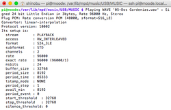 6ch(5.1ch)マルチ、96kHz/24bitのWAVを再生したところ、詳細情報には「CHANNELS: 6」と「RATE: 96000」の文字が出現。Moode Audio v3.7では再生すらできなかったところが、画面の情報を見るかぎりでは狙いどおり96kHz/24bitの6chマルチで再生できている。96kHz/24bitの2chも、レート変換なしに再生できているようだ。