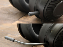 なお本機はゲーム用途も想定するヘッドセットでもあるので、ボイスチャット用のマイクが内蔵されている。マイクの先端を伸ばすと口元まで持ってくることができるが、使わない場合はハウジングに格納できるので、見た目にはオーディオ用ヘッドホンと変わらない。カラバリはブランドのシンボルカラーであるグリーンのほか、落ち着いたブラックとホワイトが揃う。ケーブルは本体片出しで、インラインにボリュームコントローラーを装備する。
