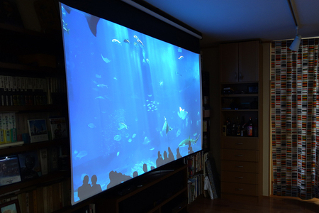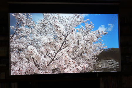 画質は想像以上に素晴らしく、憧れの100インチで映画が観られる幸福に浸っています。サラウンド音場とのマッチングは最高で、ソースの画質が素直に反映され、品位の高いブルーレイディスクを再生したら息を呑むような美しさです。超解像などの調整項目を必要に応じて調整しています。
