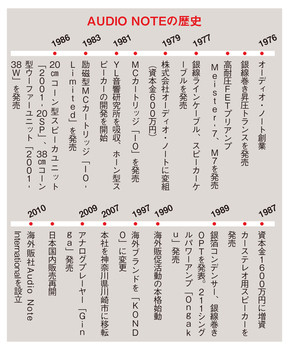 「日本のブランド」とか「もともとは」といった表現をあえて書くのには理由がある。一時期、具体的に書けば1990年代から2009年まで、オーディオ・ノートは日本市場においては幻の存在だったからだ。メインの市場はイギリスをベースとした欧米だったのだ。創業者の近藤公康氏は、世界で初めて銀線を使ったオーディオ機器を開発した。それは音のための妥協を許さない姿勢からだったが、製品は大変高額なものになり、日本市場では幻のブランドになってしまった。