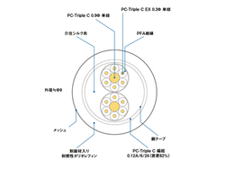 もっと詳しく解説すると、構造図で一目瞭然だが、中心部に同芯撚りのPC-Triple C導体(2.0sq)を、外周部にPFAフッ素樹脂で絶縁した0.5φの導体をリッツ線構造として、中心導体と同心に11本配する構造とした。周到な絶縁と分離効果で干渉を排し、広帯域と静寂を実現し広大な音場感を実現したのだ。