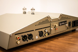 アナログ段はA級ソリッドステート構成で、上位モデルとして6922/6DJ8真空管バッファ(アクティブ・バイアス・パラフィード・シングルエンド・チューブ・バッファ)を備える「Vi DAC Tube」もラインナップ。ヘッドホン出力は一般的なシングルエンド・アンバランスの他、4ピンXLRのバランス駆動出力も装備。USB入力の他、光・同軸S/PDIF、AES/EBU入力も備えており、Da Vinci DACにも採用されている、独自のジッター除去技術3層バッファも搭載。