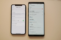 ふたつの端末のディスプレイを最大輝度にし、ウェブページを見比べてみた。ふたつの端末で白の色合いが異なっており、iPhone Xの方は純白に近いスノーホワイト、Galaxy Note 8は少し黄色味がかったオフホワイトに見える。文字の精細感には差がないが、やはりしばらくの間画面を見つめていると、どちらかと言えばGalaxyの方が疲れを感じにくいように感じられた。