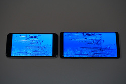 Galaxy Note 8、iPhone Xともに、拡大せずに通常表示で視聴する場合は、画面左右に黒い帯が表示される。LGは今年2月に開催されたMWC 2017のプレスカンファレンスで、画面のアスペクト比が18対9のスマホ「LG G6」を発表した。その際、その画面の優位性を「フルビジョンディスプレイ」と名前を付けて、今後アマゾン プライム・ビデオで配信される映画やドラマ、Google Playストアに並ぶゲームコンテンツなどに、18対9画面に最適化されたコンテンツが増えていくだろうとアピールしていた。同じくアスペクト比が約2対1のiPhone XやGalaxy Note 8などの端末が増えてくれば、今後拡大表示せずに全画面表示して視聴できるコンテンツも充実してくるのではないだろうか。