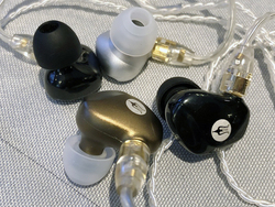 ブースを訪れると裏から持ってきて見せてくれたのがこちら。開発中というイヤホンのプロトタイプとのことだ。外装もサウンドもまだ未完成とのことで、写真の二つの個体もカラバリ検討ではなく中身も違い、実際にサウンドも違っていた。