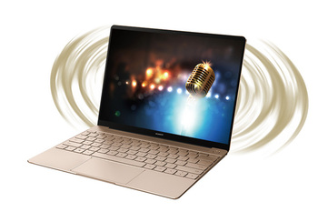 HUAWEI MateBook Xは、ノートPCとして初めて「ドルビーアトモスサウンドシステム」を搭載している。HUAWEIとドルビーが共同開発したソフトウェア、内蔵スピーカー、制振材により、大音量で高解像度、かつ包み込むようなサウンドを実現する。さらに、人の声を明瞭に聞かせる機能も備えている。