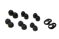 完全ワイヤレス型では落下する心配も含めより確かな耳へのフィットが求められるが、「WF-1000X」では2種類の硬度のシリコンゴムに独自開発のシリコンフォーム素材を組み合わせ、更に耳孔深くへと挿入する“ハイブリッドイヤーピースロング”“トリプルコンフォートイヤーピース”を合計7種類、耳の内側でのズレを防ぐ“フィッティングサポーター”も2サイズ付属。