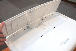 さらに、UHD60について一つ付け加えておくと、筐体はUHD65をベースにカラーをホワイトに変更した全く共通の小型筐体(498W×153H×331Dmm)と、上位機種で実績ある設計を採用。1.6倍ズームレンズ、垂直レンズシフトへの対応と、最大300インチにまで対応する投写サイズも継承している。