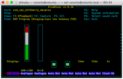 VolumioなどWEB UIの用意がないシステムを利用している場合は、SSHでリモートログインし「alsamixer」を実行する。キャラクタベースの画面が現れるので、F6キーを押してサウンドカード(DACボード)を選択、上下のカーソルキーを何度か押してみよう。表1に挙げたデジタルフィルターを選択できるはずだ。