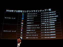 コンテンツ面での今年の大きなトピックが、巨人を除くプロ野球セ・パ11球団の試合とバスケットボールB.LEAGUEの試合中継などが追加されること。プロ野球は以前からカープとDeNAの試合を配信していたが、それ以外の球団の試合も見られるようになる。なお「主催試合を放送」という形であるため、ビジターチームが巨人の場合もDAZNで視聴できるものと思われる。