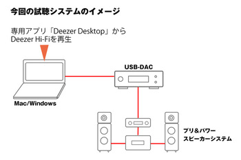 具体的な例を挙げよう。以下はいずれも筆者試聴室のメインシステムで聴いた印象で、Deezer Desktop(ベータ版)をインストールしたMacBook Proで再生し、USB-DACはエソテリック「K-01X」とRME「ADI-2PRO」を使用した。