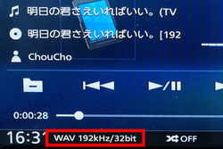 ハイレゾ対応カーナビ、“彩速ナビ” TYPE Z「MDV-Z905」最大の魅力といえば、やはり対応するハイレゾ音源スペックの幅広さだろう。192kHz/24bitまでのリニアPCM音源をネイティブ再生できるほか、11.2MHzのDSD音源にもリニアPCM変換ながら対応している。また実機でチェックしたところ、メーカーが保証している訳では無いだろうが192kHz/32bitの音源も再生可能となっていた。カーAV製品でここまでのスペックに対応するモデルはほとんど無く、カーナビに限定すれば皆無といっていい。
