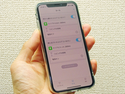 もう一つ、Nature Remoの機能で注目したいポイントがある。スマホのGPS機能と連動する自動操作だ。こちらはNature Remoアプリの「ルール」からコマンドを簡単に設定できる。例えばアプリを入れたスマホを持ち、家から一定の距離まで離れたら自動的に照明やエアコンをオフにする。逆に、帰り道に家に近づいたら、照明やエアコンの電源をオンにするというルールをそれぞれ登録しておけば、照明の消し忘れが防げるし、室温がベストコンディションに整ったわが家に帰れる。スマホアプリを開かなくてもいいし、スマートスピーカーに話しかける必要もない。これこそが本物のスマートライフだ。