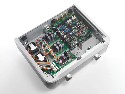 一連のエソテリック製アンプでお馴染み、曲面カッティングによる優美なフロントパネルを備えた高剛性の筐体を纏い、前面に備わった大型ノブもアルミニウム無垢材からの削り出しだ。電源部はRコアトランスから左右独立という十分な容量である。