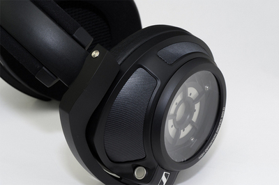 アイコニックなパーツデザインはHD 800/HD 800Sを踏襲しており、ハウジングのステンレスメッシュ部はこれら2機種の意匠を取り入れ、成形で表現している。イヤーカップ全体をボアアップしたかのようなフォルムだが、装着性はHD 800/800Sと大きく変わらず、遮音性・防音漏れ性能はともに良い印象だ。