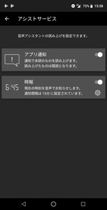 という例が挙げられている。音楽再生中でも音量を自動調整して通知、読み上げる対象にするアプリや内容を柔軟に設定できるなど、実用的に作り込まれている。