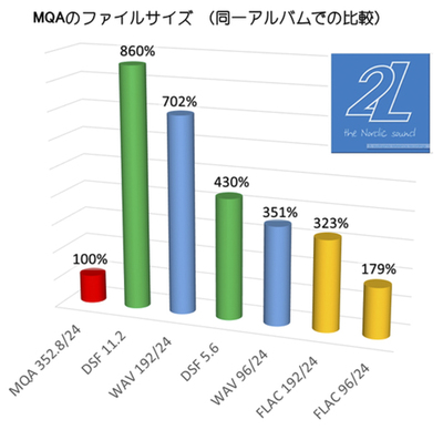 現在でもたくさんの音源形式があるのだが、従来の音源の形式と比べてのMQAの利点は、端的に言うとデジタル音楽において「音質は高く、かつデータ量は少ない」というこれまでなら相反する要素を両立させたという点だ。つまり、ハイレゾやDSDは音質は良くてもデータ量が多くなってしまうが、MQAならば高音質でかつデータ量が少なくて済む。